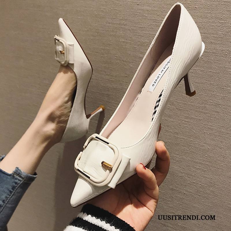 Avokkaat Naisten Halvat Terävä Kohta Naisille Derbies 2019 Kevät Vaalean Kermanvärisiä Punainen