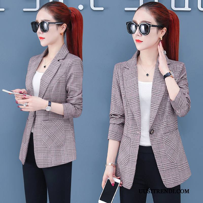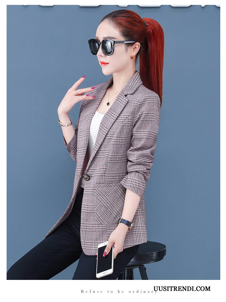 Bleiseri Naisten Myynti Ruudullinen Kevät Casual Syksy Jakkupuku Rose Punainen