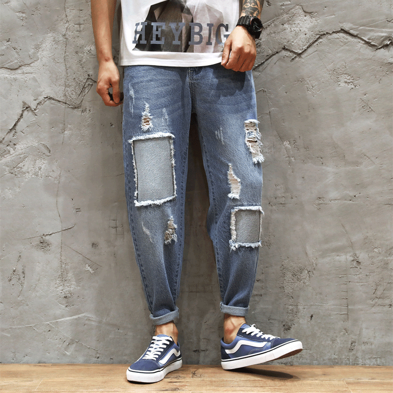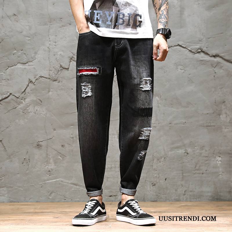 Farkut Miesten Myynti Löysät Casual Reiät Housut Suora Sininen