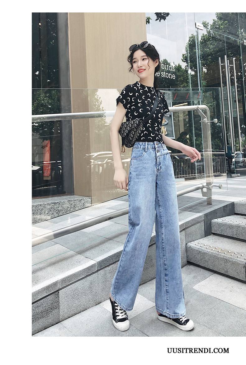 Farkut Naisten Verkossa Korkea Vyötärö Löysät Kesä Housut Suora Vaalean Sininen