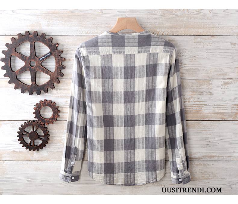 Paita Miesten Tarjous Casual Nuoret Kauluspaida Pitkät Hihat Kevät Puhdas Valkoinen Musta