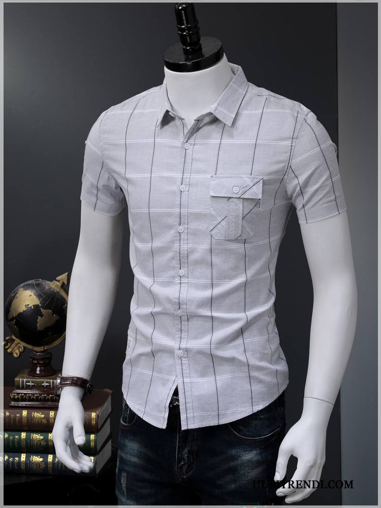 Paita Miesten Verkossa Ruudullinen Kauluspaida Nuoret Casual Tuore Pinkki