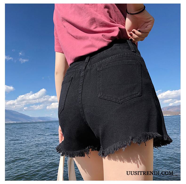 Shortsit Naisten Myynti Kesä Korkea Vyötärö Reiät Joustavat Löysät Musta Harmaa