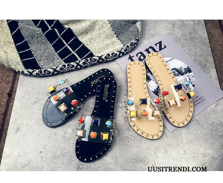Tohvelit Naisten Halpa Paksu Pohja Suuntaus Naisille Kesä Helmi Pinkki Punainen
