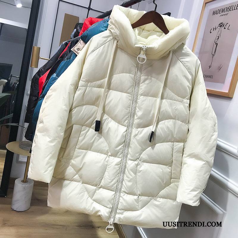 Untuvatakki Naisten Halvat Pitkässä Osassa Suuri Koko Naisille Uusi Hupullinen Valkoinen Musta